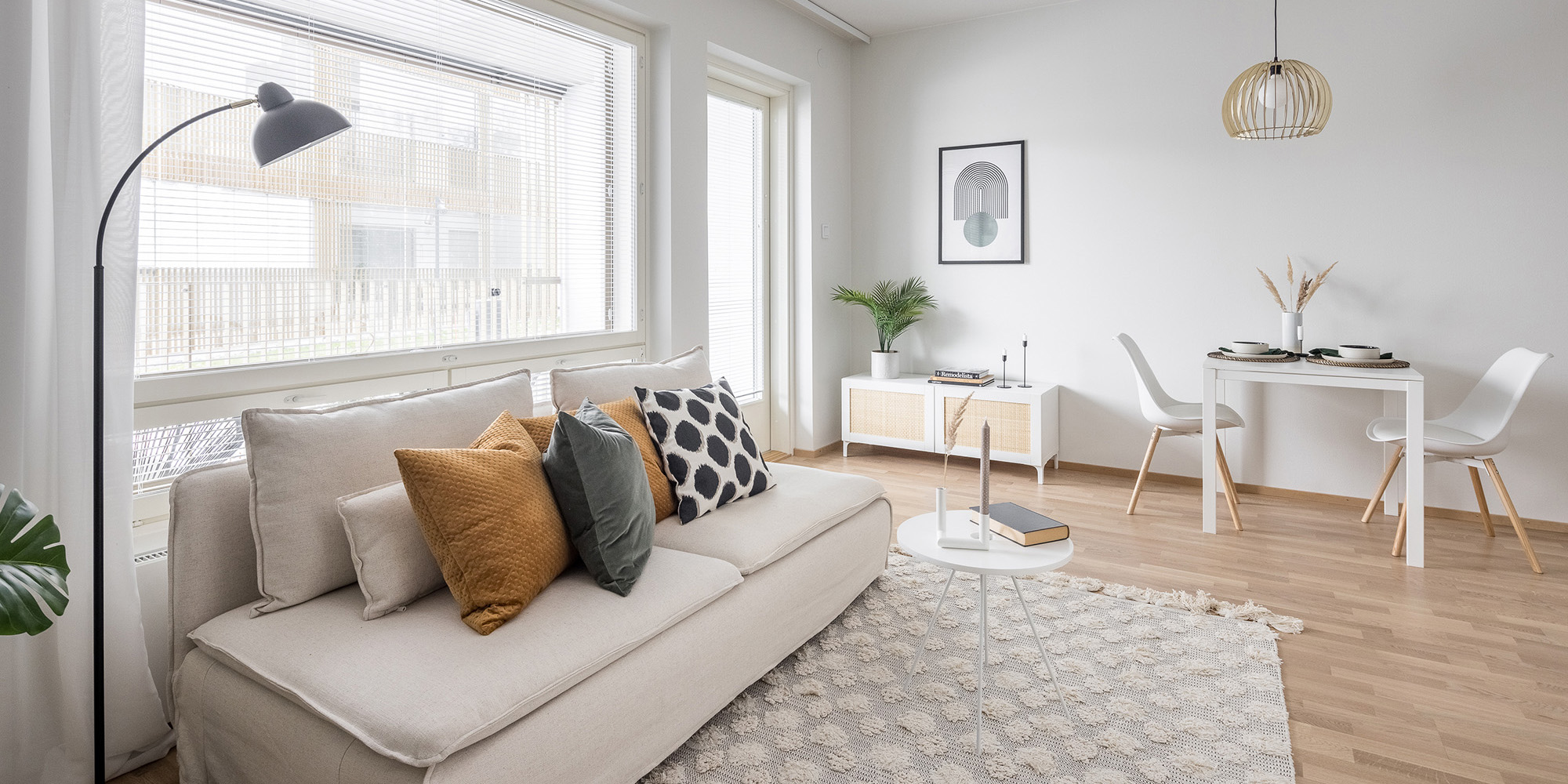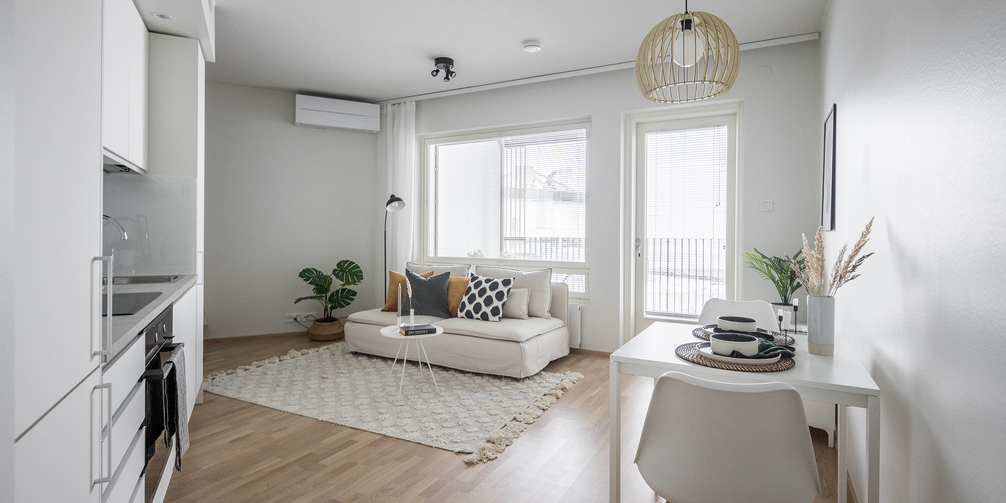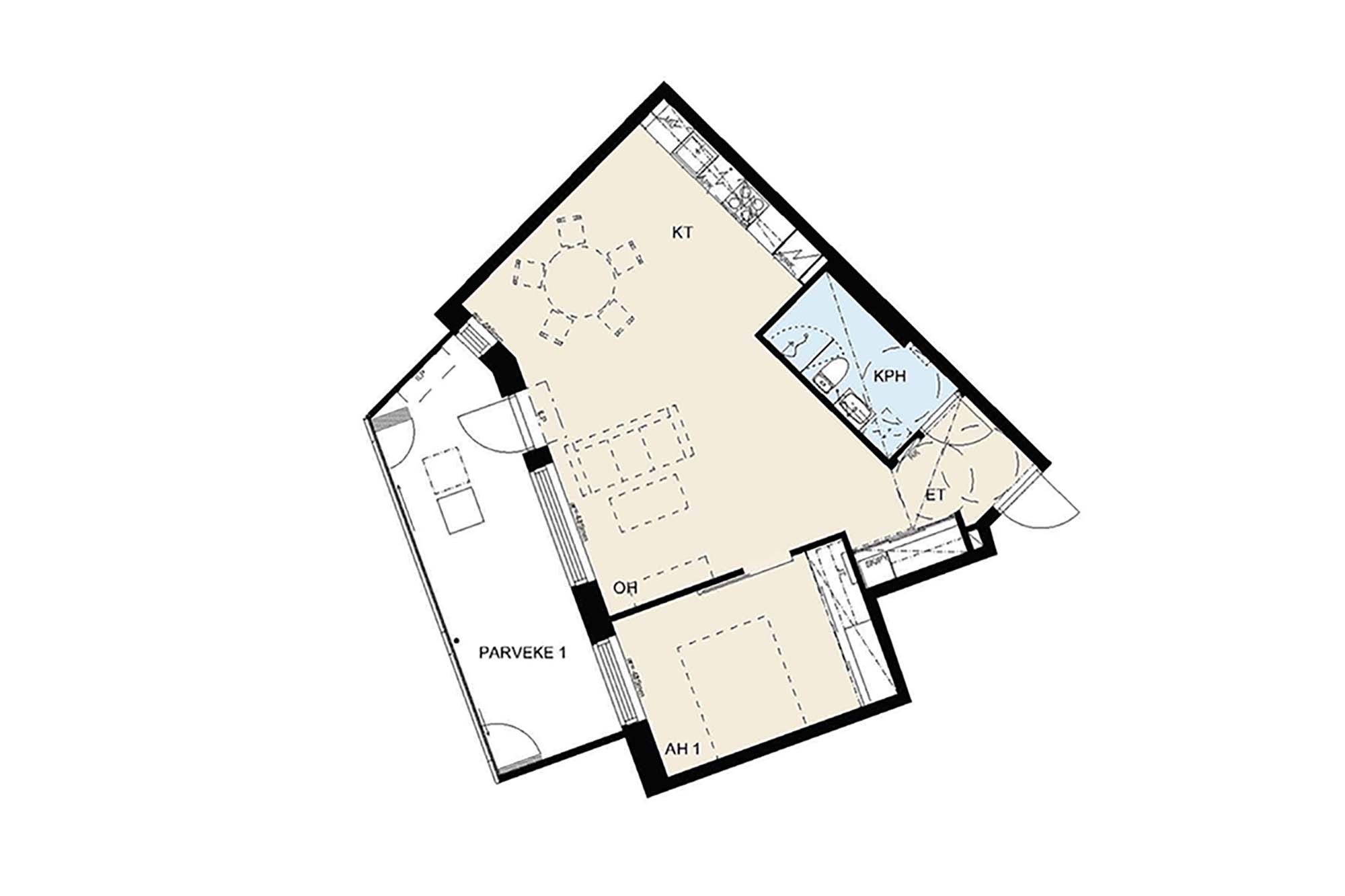 Suuri ja valoisa kaksio. Keittiön ja olohuoneen yhdistelmä on erittäin avara. Makuuhuoneeseen johtaa tilaa säästävä liukuovi. Länsiparvekkeesta kannattaa sisustaa tyylikäs kesäkeidas.