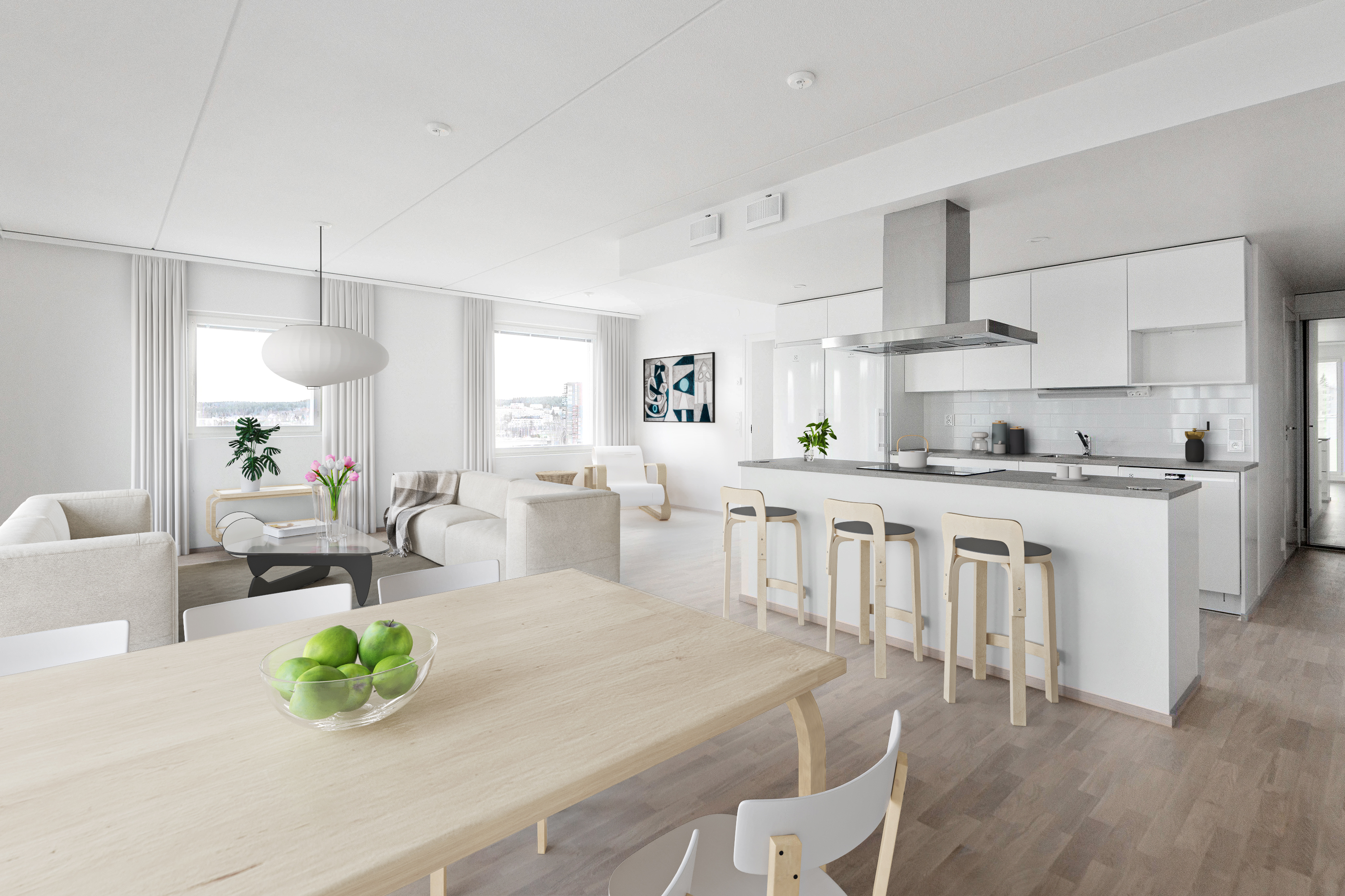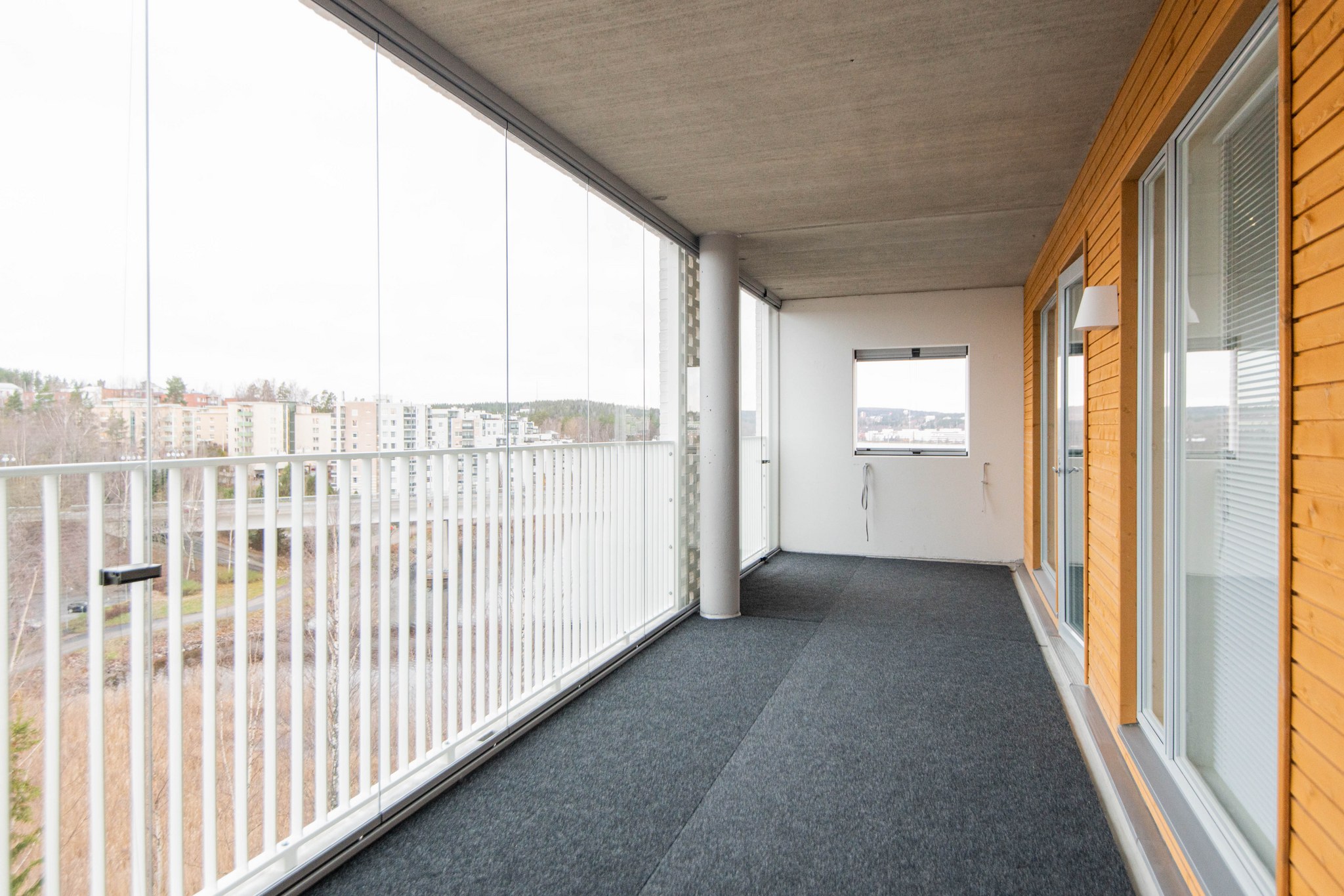 Suurenmoinen ylimmän kerroksen huoneisto Jyväsjärven rannalta. Tässä on koti ihmisille, jotka eivät halua tyytyä tavanomaisimpiin ratkaisuihin. Esimerkiksi päämakuuhuoneen vaatehuone on suorastaan ruhtinaallisen kokoinen. Makuuhuoneesta on myös oma käynti isolle aurinkoiselle parvekkeelle. Avokeittiö ja olohuone muodostavat tyylikkään yhteisen avotilan, johon voi sommitella useita erilaisia kalusteratkaisuja.