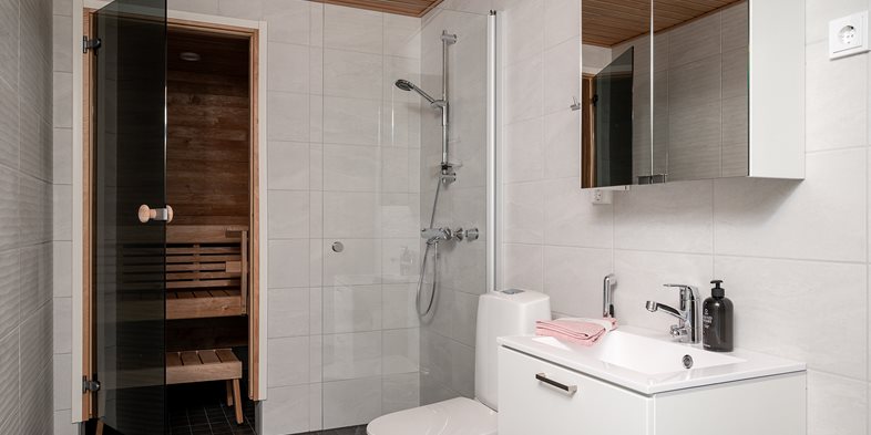 Persoonallinen kaksio omalla saunalla! Pitkän päivän pölyt on ihana huuhtoa kotisaunan lauteilla. Keittiön ja olohuoneen yhdistelmässä kaikki olennaisimmat kalusteet loksahtavat luontevasti paikoilleen. Lasitetusta parvekkeesta kannattaa sisustaa oman tyylin mukainen viihtyisä kesäkeidas.