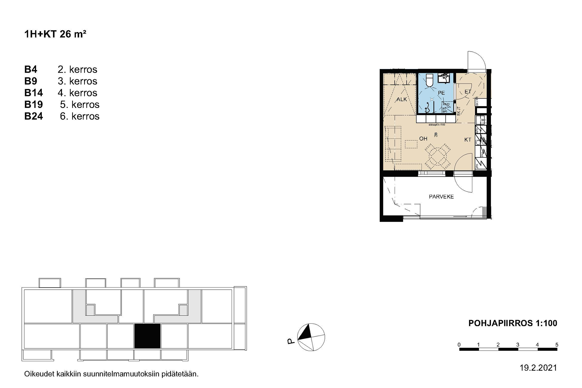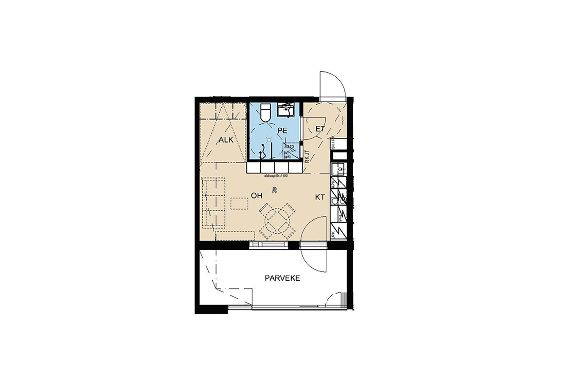 Valoisa ja persoonallinen pikkukoti! Huoneiston levyinen iso lasitettu parveke monipuolistaa oleskelutiloja kesäkaudella. Parisängyn vetävä alkovi jättää tilaa muille kalusteille. Säilytystilaa on järjestetty alkovin yläkaappeihin ja olohuoneen mataliin kaappeihin.