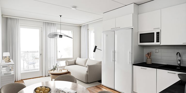 Huom. Kalustetut kuvat ovat asunnosta A3, jossa on vastaava pohja.