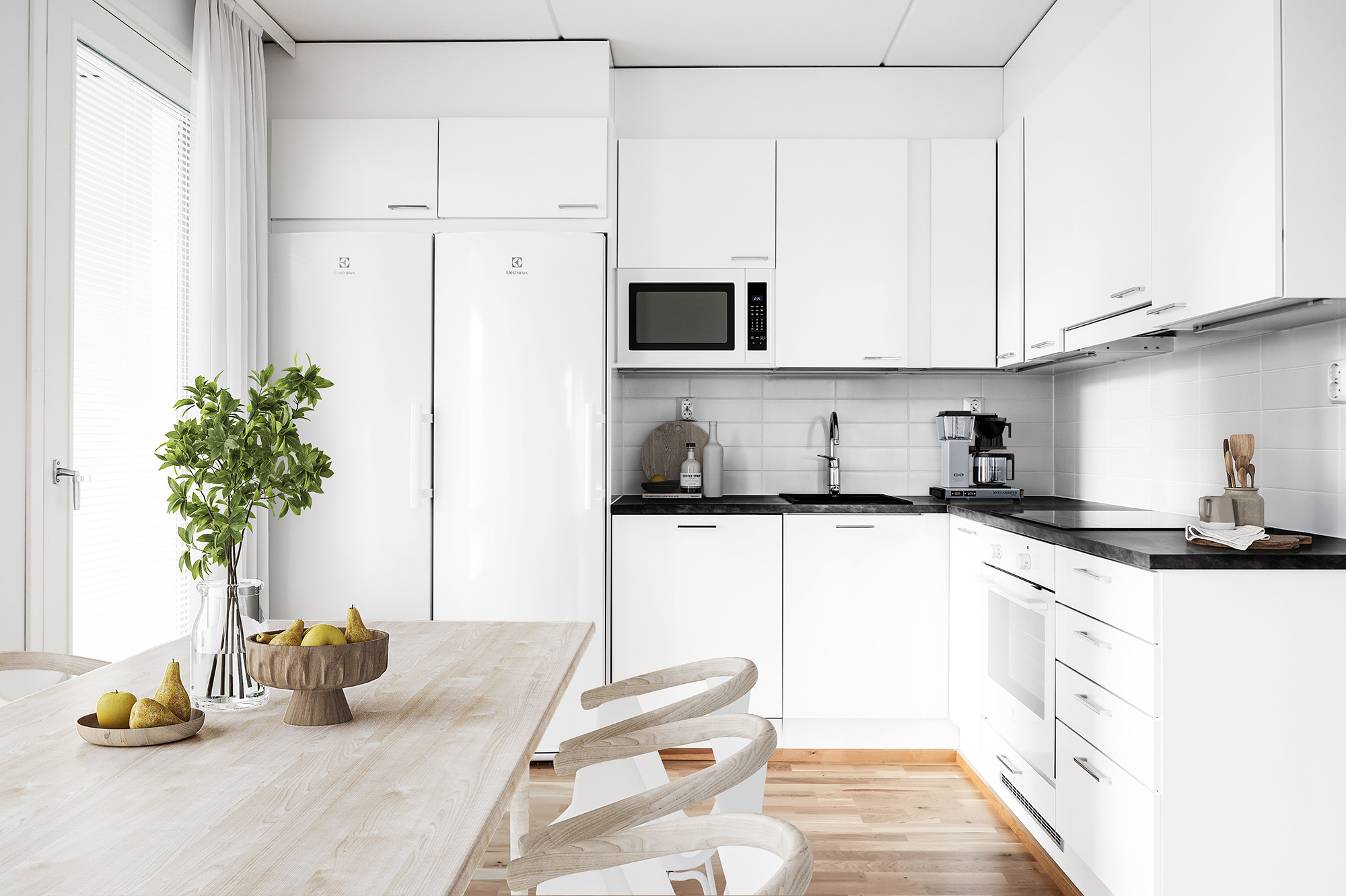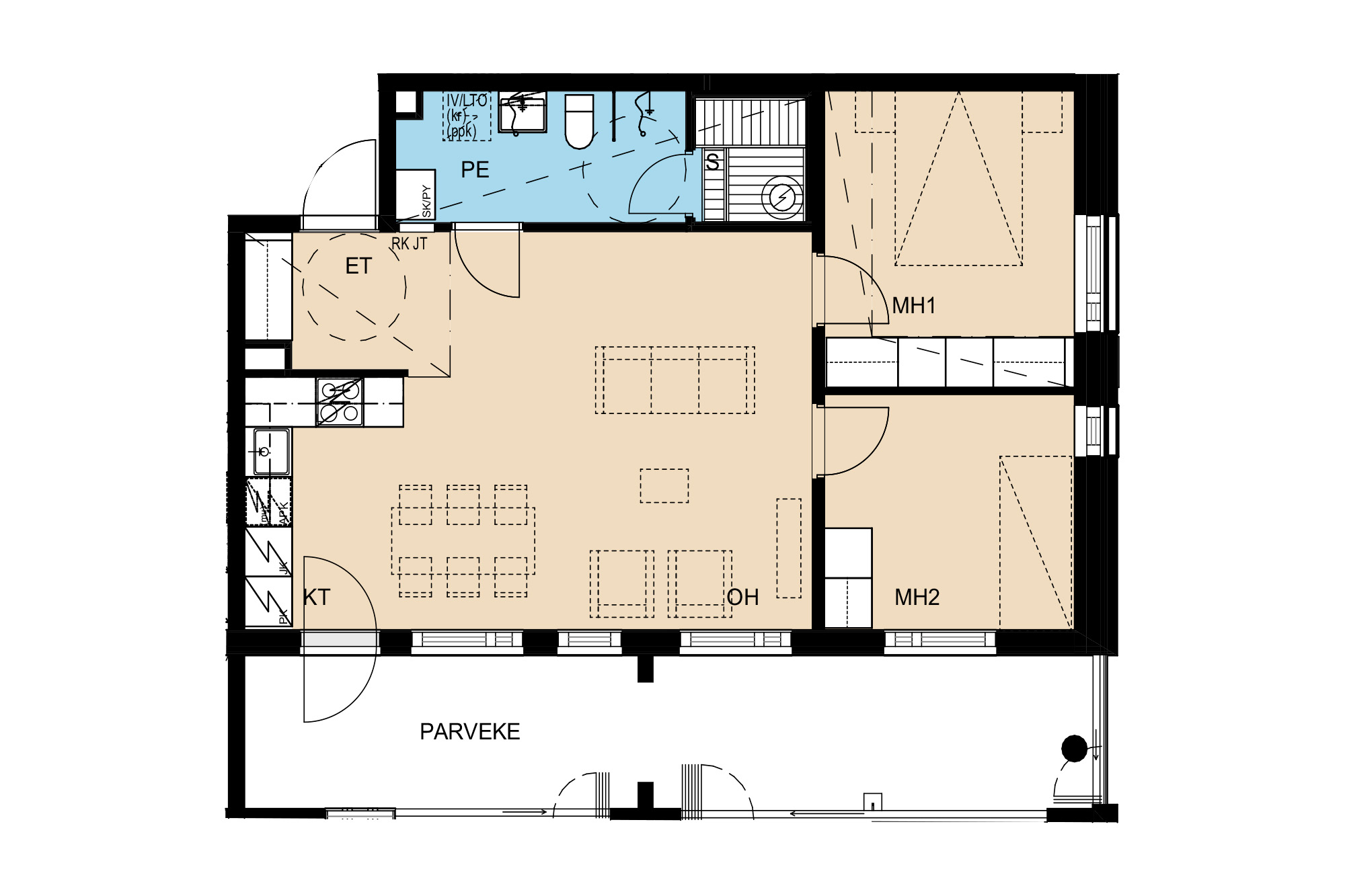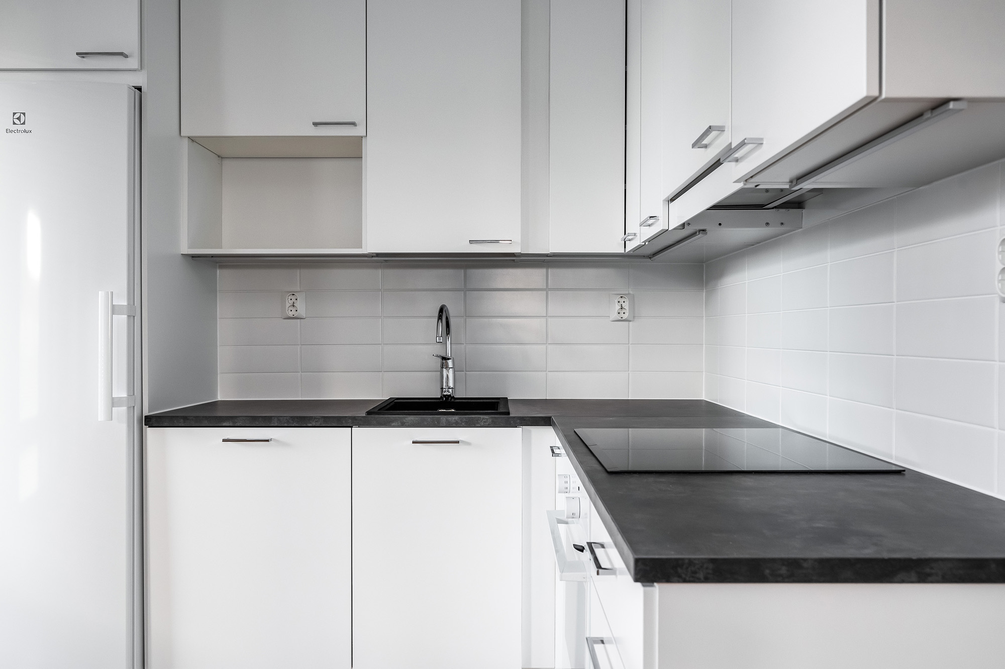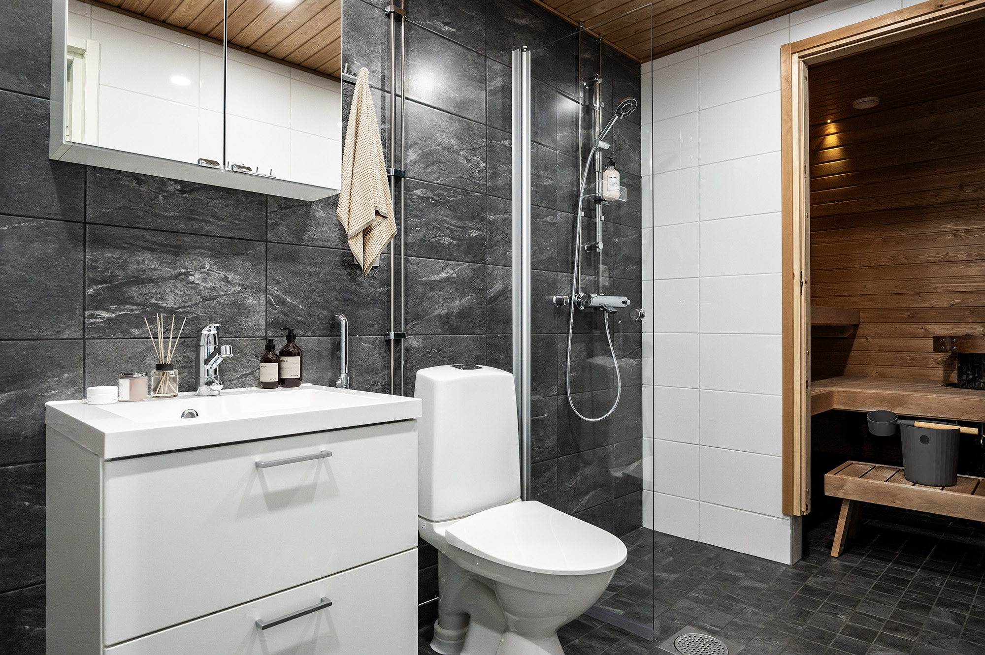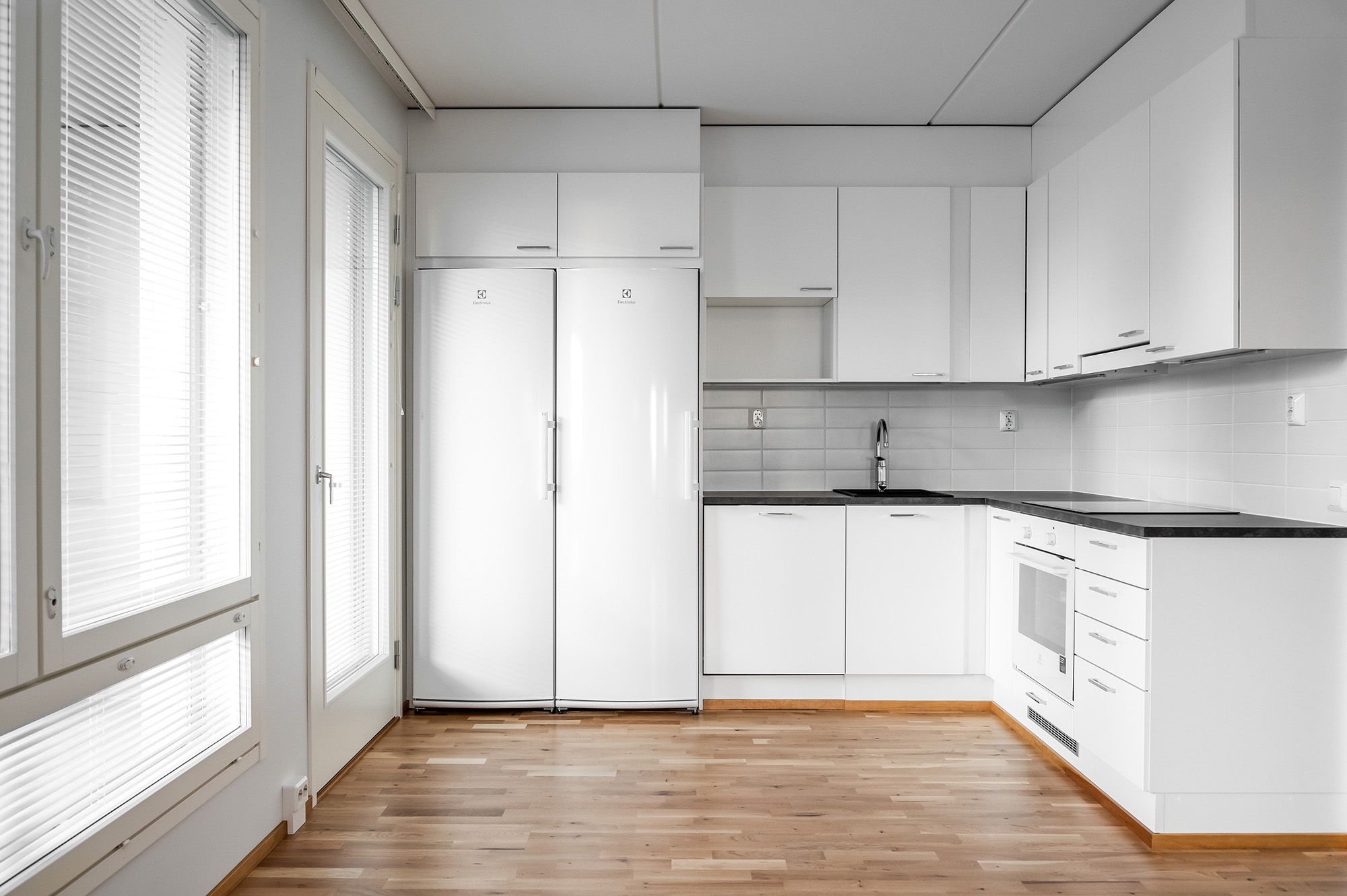 Hurmaava kolmio rakennuksen kulmalta, jossa huikean kokoinen etelään päin suuntaava parveke ja näyttävä sauna. Molemmat makuuhuoneet ovat mukavankokoisia. Olohuoneen ja keittiön yhdistelmä on erittäin avara. Auringonvalo säteilee sisään isoista etelänpuoleisista ikkunoista.