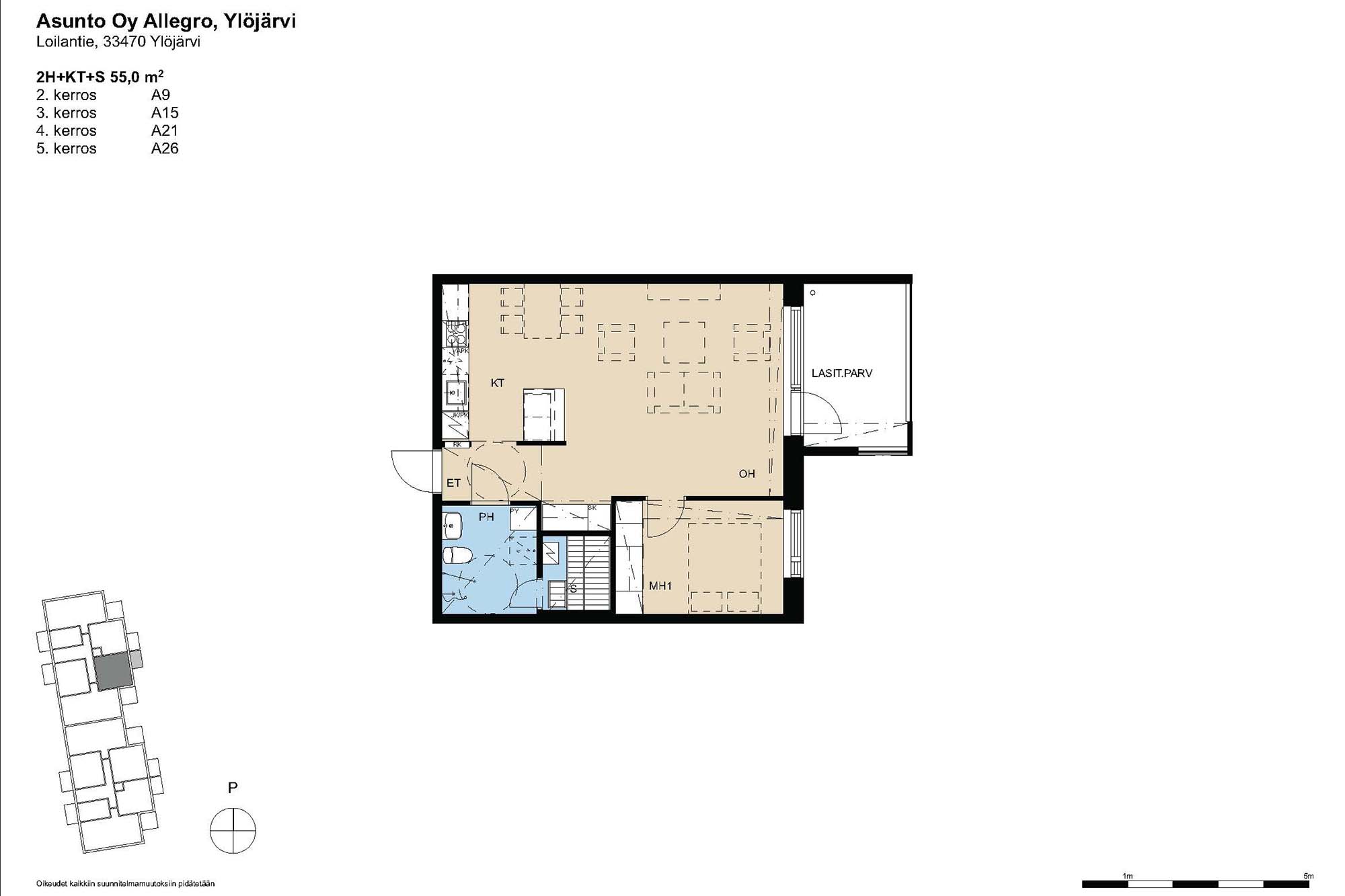 Uusien kotien pohjaratkaisut ovat hyvin suunnitellut. Tavoitteena on ollut jokapäiväisen toimivuuden optimointi. Varsinkin Allegron isommat asunnot ovat kookkaiden huoneidensa ansiosta helposti sisustettavissa. Kaikissa kolmioissa ja neliöissä on erillinen kodinhoitohuone. Asumismukavuutta lisäävät laadukkaat pintamateriaalit. Keittiöt on varustettu modernisti kalusteuunein ja keittotasoin. Yhtä asuntoa lukuun ottamatta oleskelutilat laajenevat kesäkaudella isolle lasitetulle parvekkeelle.