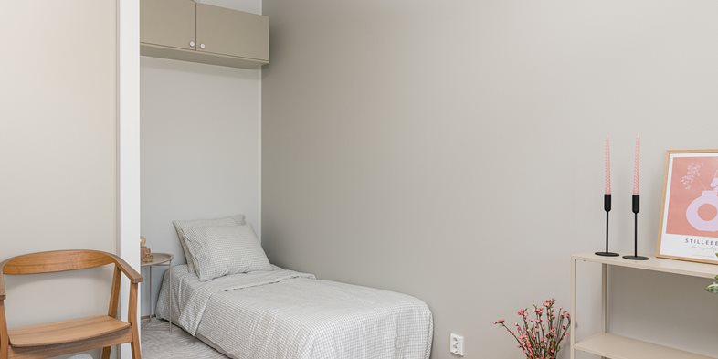 Tehokas ja toimiva yksiö, jossa on kaikki eväät sujuvaan arkipäivään. Pohjaratkaisusta löytyy luontevat paikat olennaisimmille kalusteille. Sängylle on suunniteltu suojaisa paikka. Ilta-auringon suuntaan avautuva lasitettu parveke on yhtä leveä kuin koko asunto.