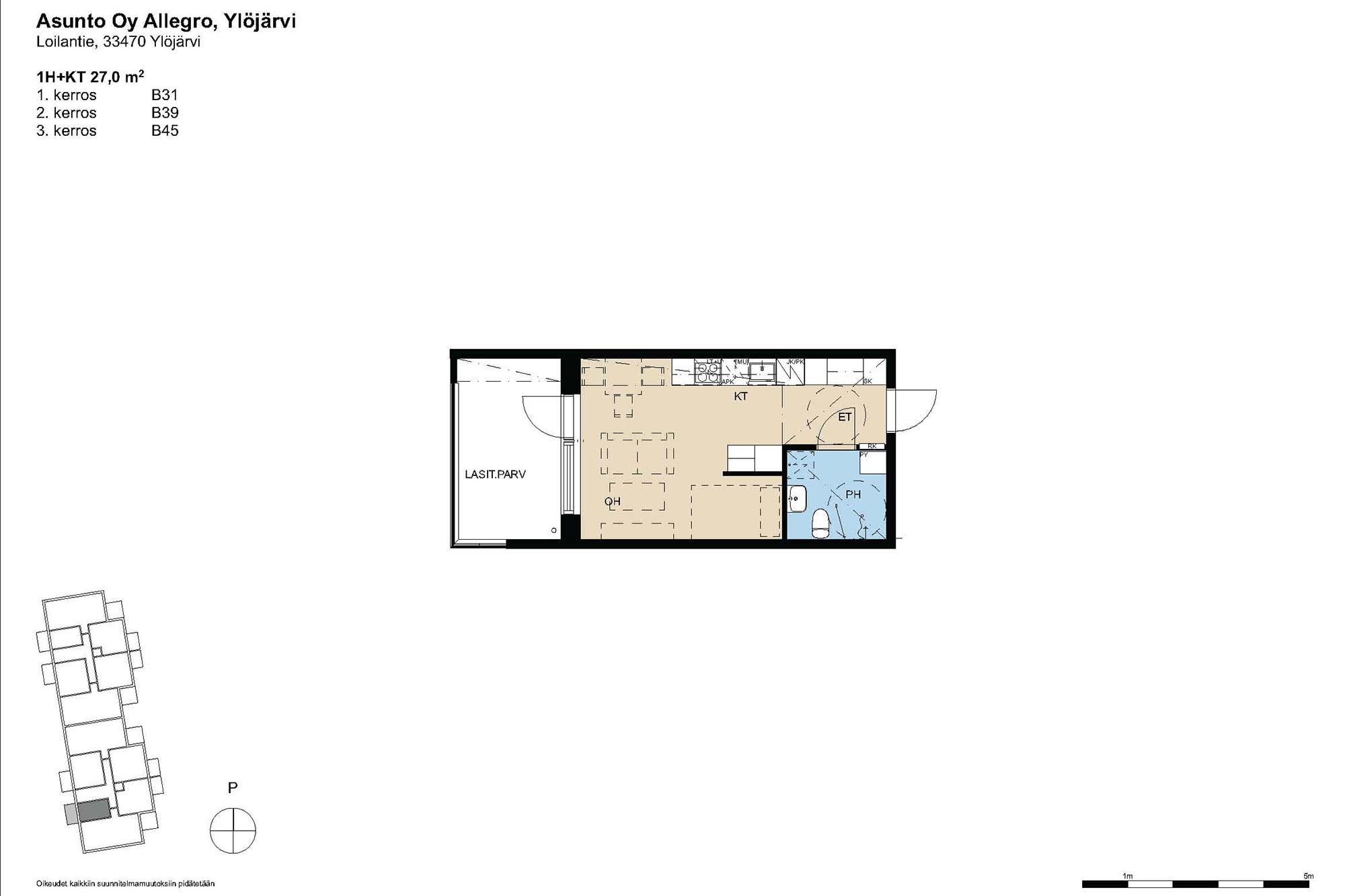 Huom. Asunnon valokuvat ovat samankokoisesta toisen kerroksen mallihuoneistosta B39, jossa on vastaava pohjaratkaisu.