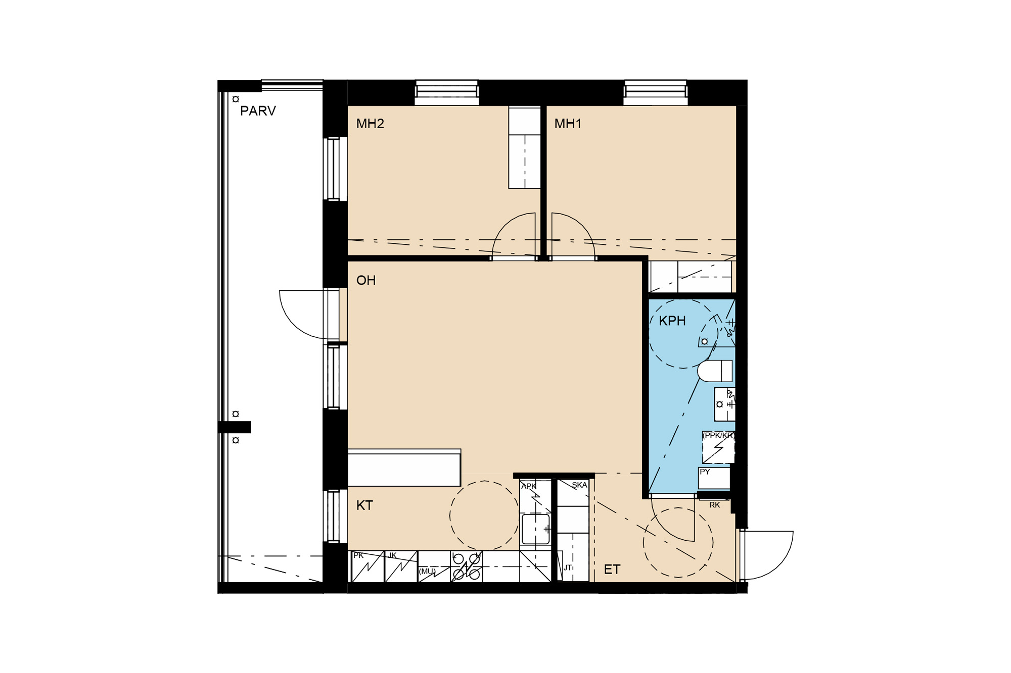 Rakennuksen kulmaan sijoittuva kahden tilavan makuuhuoneen huoneisto, jonka sydämenä toimii keittiön ja olohuoneen valoisa yhdistelmä. Pitkälle niemekkeelle voi kattaa näyttävät tarjottavat isommallekin ryhmälle. Ruhtinaallisen kokoiselta parvekkeelta avautuu vaikuttavia maisemia.