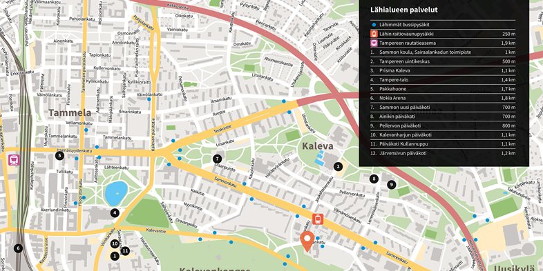Kalevanrinteen Vanamo rakennetaan perinteikkäälle ja arvostetulle alueelle Kalevan kaupunginosaan, aivan Kalevanrinteen kupeeseen. Metsään rajautuvasta suojaisasta korttelista on lyhyt matka päiväkoteihin ja kouluihin, yliopistolle, ammattikorkeakoululle ja TAYSiin. Kalevan kauppapalvelut ja Tampereen uintikeskus ovat niin ikään kävelymatkan päässä.