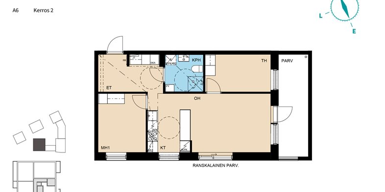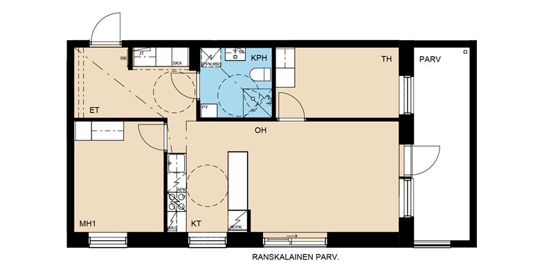 Suurenmoinen huoneisto, jonka tilat jatkuvat koko asunnon mittaiselle parvekkeelle. Jo eteisessä on reilusti tilaa. Pitkä niemeke rajaa keittiön omaksi kokonaisuudekseen. Isojen ikkunoiden ja ranskalaisen parvekkeen ansiosta olohuone on erittäin valoisa. Työhuone on omiaan etätyöskentelyä varten.