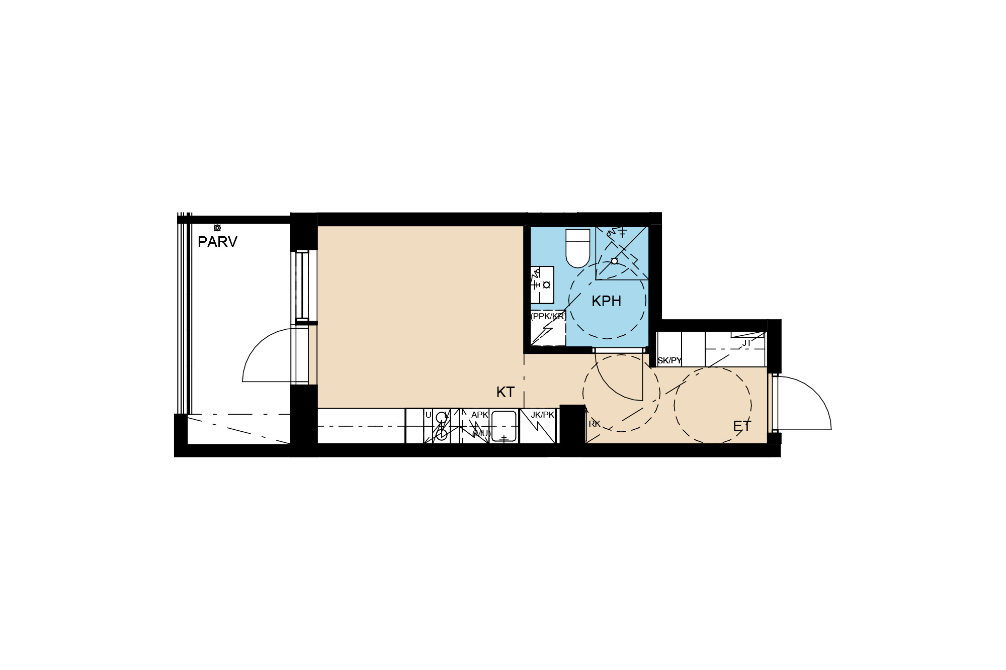 Tilatehokas yksiö, jossa on asunnon kokoon nähden iso kylpyhuone ja kivasti säilytystilaa. Lasitetulla länsiparvekkeella voi nauttia lämpimistä päivistä jo keväällä. Asumisviihtyisyyttä lisää vesikiertoinen lattialämmitys.