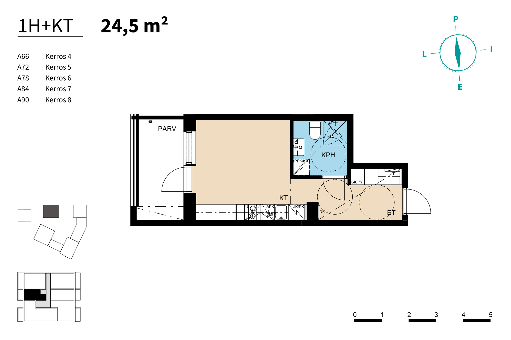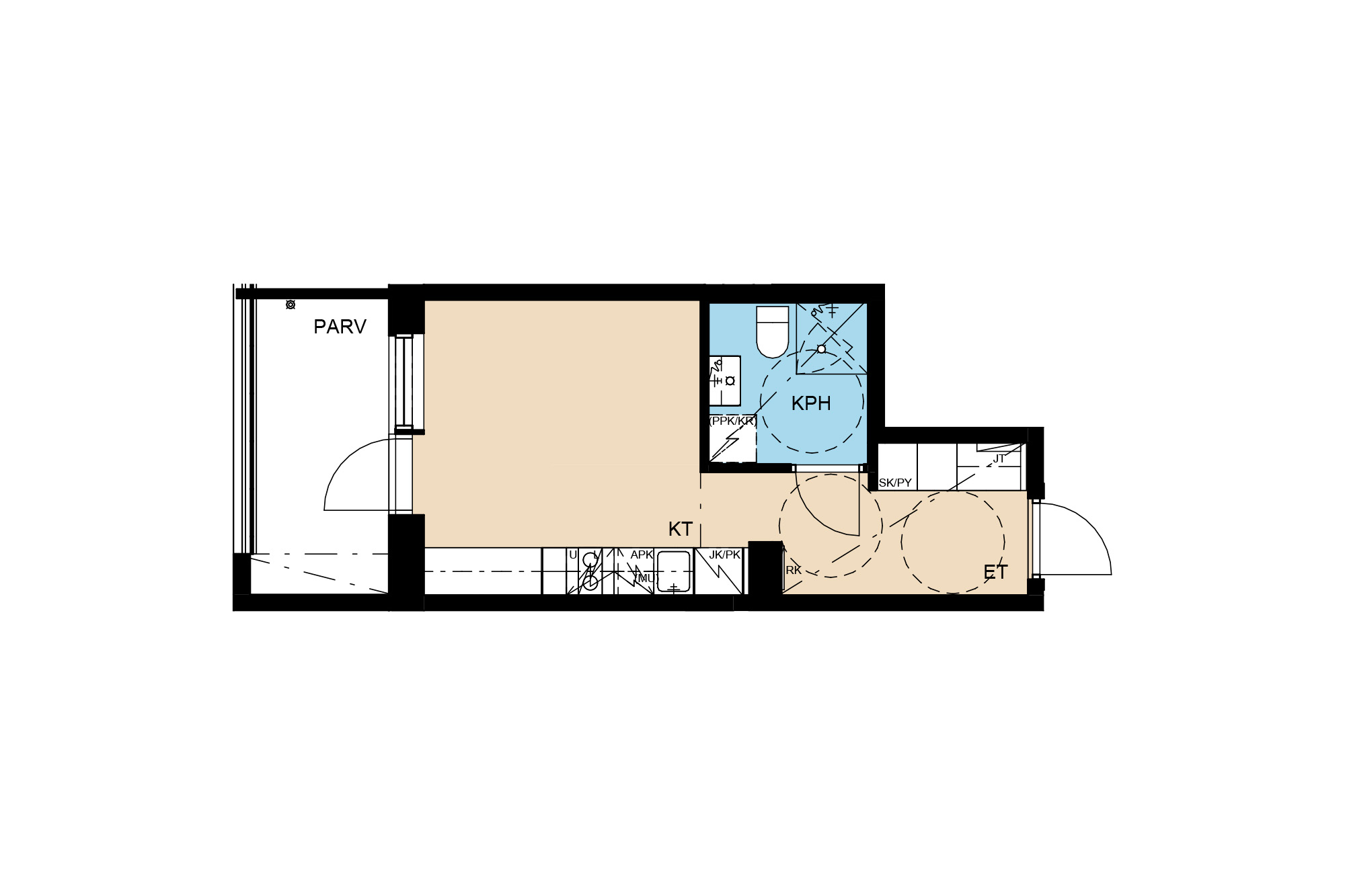 Tilatehokas yksiö, jossa on asunnon kokoon nähden iso kylpyhuone ja kivasti säilytystilaa. Lasitetulla länsiparvekkeella voi nauttia lämpimistä päivistä jo keväällä. Asumisviihtyisyyttä lisää vesikiertoinen lattialämmitys.