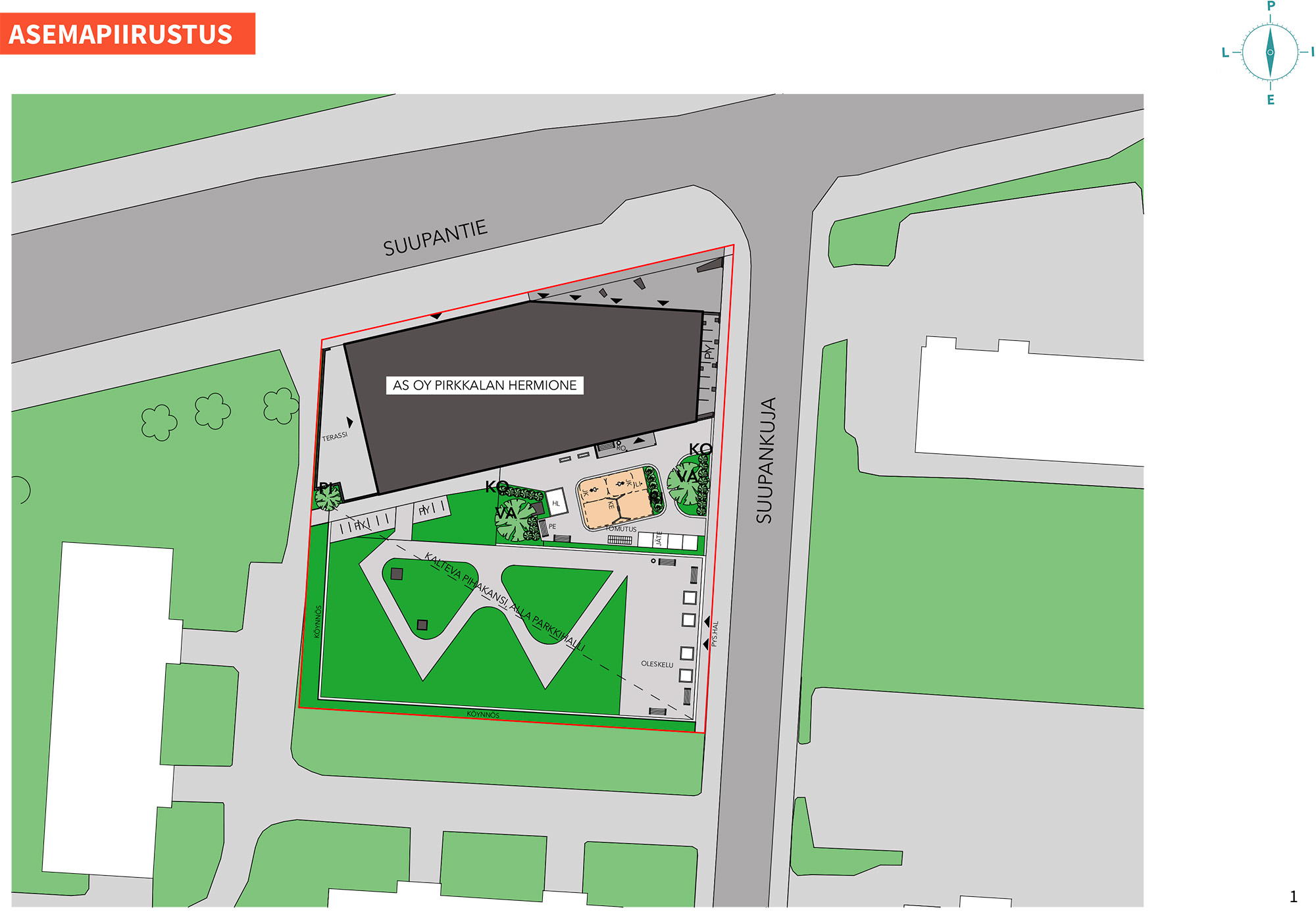 Suupantien ja Suupankujan kulmassa sijaitsevan Hermionen pihasta tulee vehreä ja viihtyisä. Pihan maanvaraiselle osalle on istutettu puita ja pensaita, ja autohallin katto on toteutettu viherkattona, jonka katemateriaaleina vaihtelevat muun muassa maksaruoho, ketokukka ja sammal.