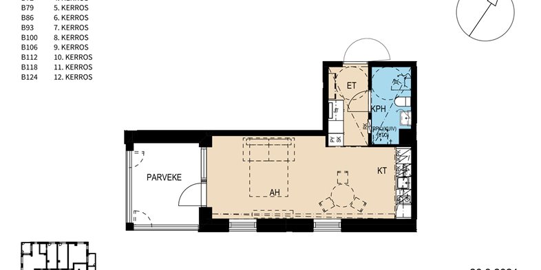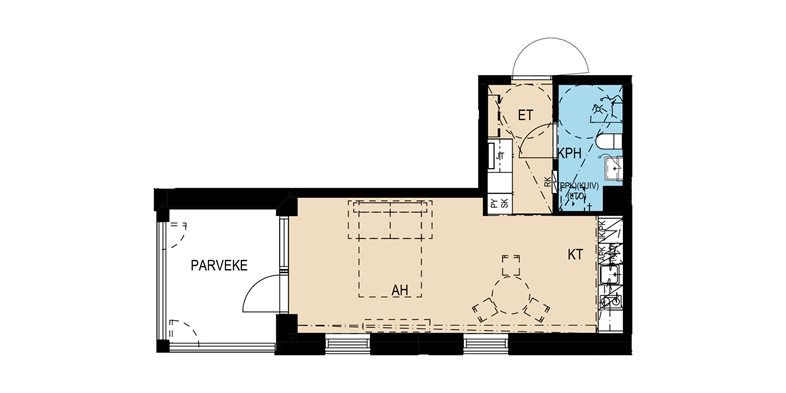 Pohjaratkaisultaan älykäs ja valoisa yksiö isolla lasitetulla parvekkeella. Laadukkaasti rakennetun kaupunkiasunnon viihtyisyyttä lisäävät parkettilattia, vesikiertoinen lattialämmitys sekä huoneistokohtainen ilmanvaihto. Viimeistele upouuden kotisi tyyli valitsemalla mieleisesi sisustusmateriaalit rakennuttajan valikoimista!