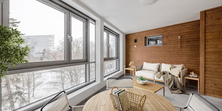 Tilava kolmen huoneen asunto lasitetulla parvekkeella tarjoaa asumisen absoluuttista mukavuutta vaativaankin makuun. Avara olohuone mahdollistaa monenlaiset sisustusratkaisut. Molemmat makuuhuoneet sijaitsevat näppärästi saunallisen kylpyhuoneen ja erillisen toisen wc:n lähellä. Kodinhoitohuoneessa hoituvat arjen askareet ja peräti kaksi erillistä vaatehuonetta antavat kaivattua lisätilaa säilytykseen!