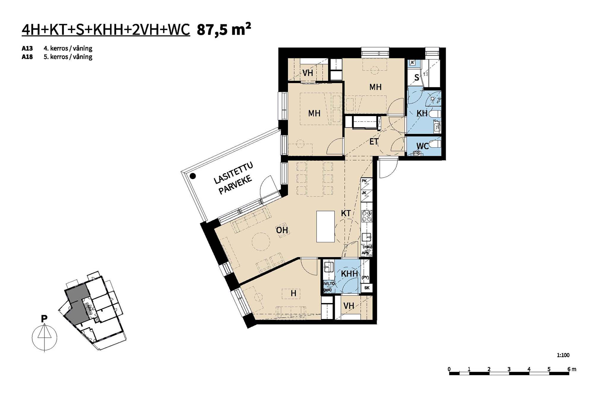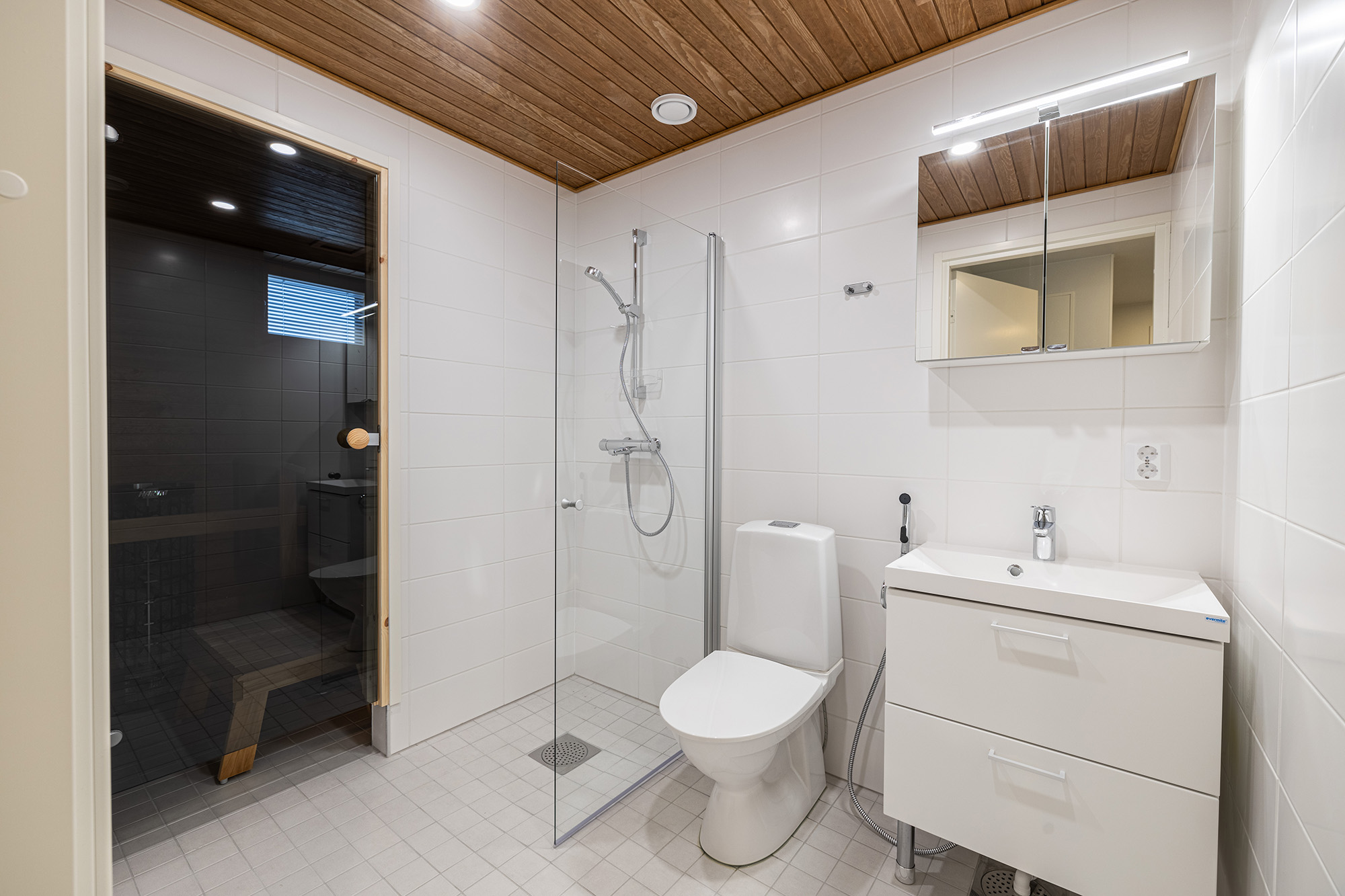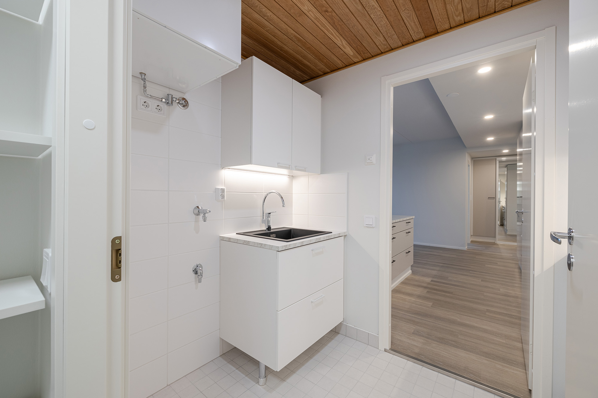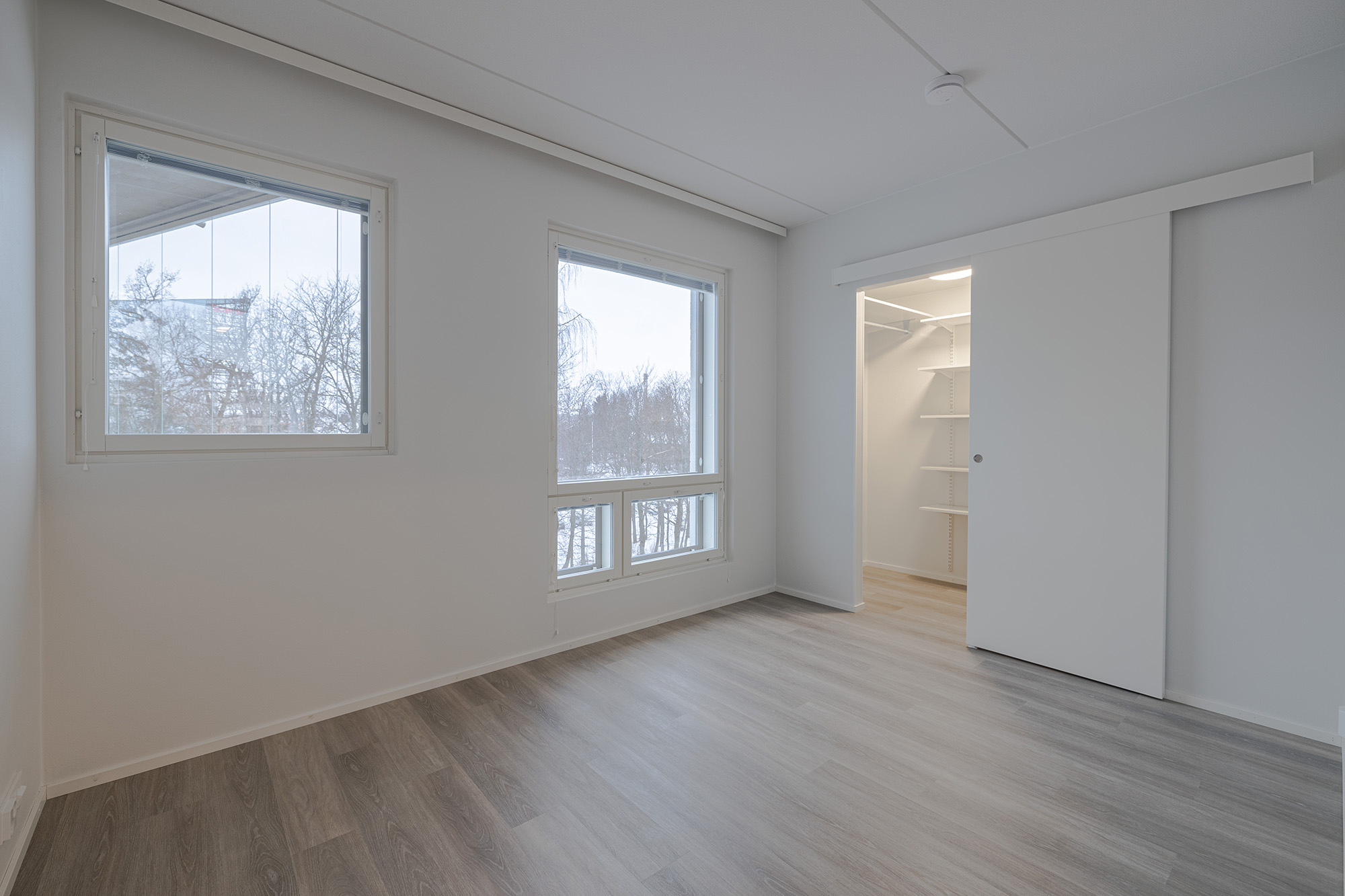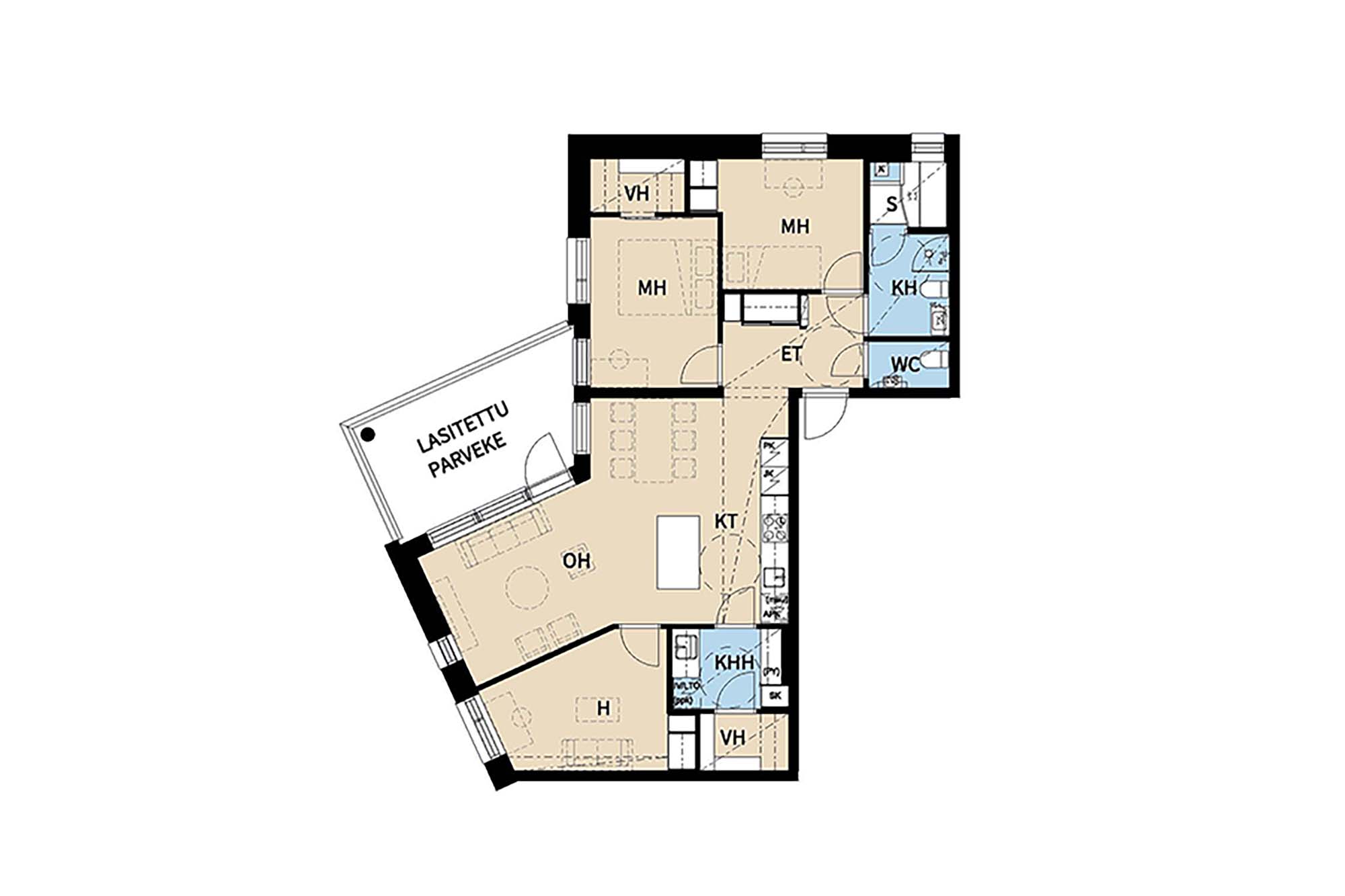 Tilava kolmen huoneen asunto lasitetulla parvekkeella tarjoaa asumisen absoluuttista mukavuutta vaativaankin makuun. Avara olohuone mahdollistaa monenlaiset sisustusratkaisut. Molemmat makuuhuoneet sijaitsevat näppärästi saunallisen kylpyhuoneen ja erillisen toisen wc:n lähellä. Kodinhoitohuoneessa hoituvat arjen askareet ja peräti kaksi erillistä vaatehuonetta antavat kaivattua lisätilaa säilytykseen!