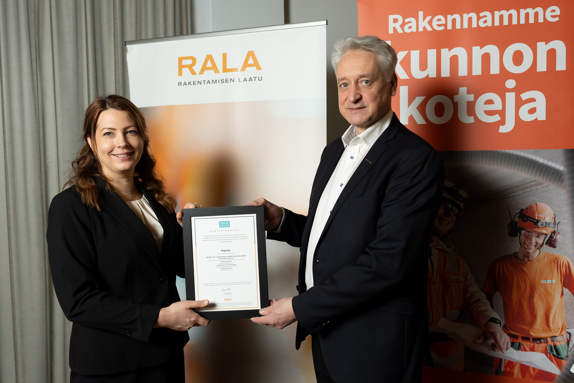 Peab on ensimmäisenä rakennusyhtiönä Suomessa saanut Rakentamisen Laatu RALA ry:n kosteudenhallintasertifikaatin. Sertifiointi kertoo siitä, että teemme kaikkemme varmistaaksemme uuden Peab-kotisi terveellisyyden ja kestävyyden.